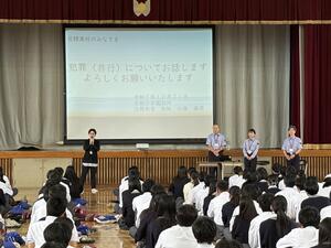 21日の3・4限に京都少年鑑別所から法務教官の割柏様・加藤様・藤原様に来校していただき、講演をしていただきました。講演の内容をしっかりと自分なりに理解して、誘惑に負けず、健康で安全な高校生活を送ってほしいです。