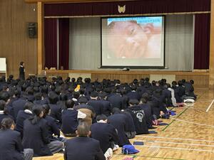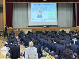 14日に1年生は京都府助産師会助産師の永田理惠様に来校していただき、助産師によるいのちと性のはなし「大切なあなたへ~思春期の性と性感染症~」という講演を行っていただきました。体が大人になっていくタイミングで、とても意義深い話でした。