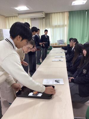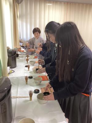 10月23日に3年生選択フードデザインの授業において、京都府伝統文化事業の一環として裏千家田中宗悦先生をお迎えし、茶道体験を実施しました。生徒たちは日本文化の奥深さを感じ、所作の美しさに心が整ったと言っていました。