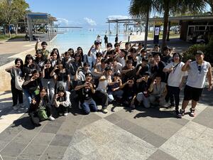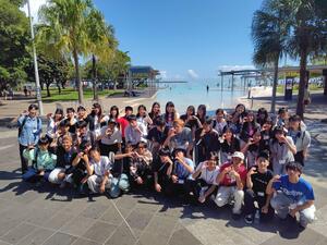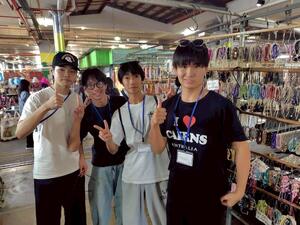 飛行機は、現地時間10月26日の6時20分ごろにケアンズ空港に着陸し、無事オーストラリアへ入国しました。ラスティーズマーケットで散策した後、ラグーンにて集合写真を撮影しました。その後、ホームステイへと向かい、現地の方々と交流し、家族の一員として生活しました。