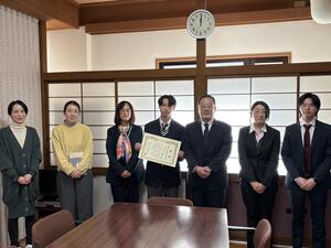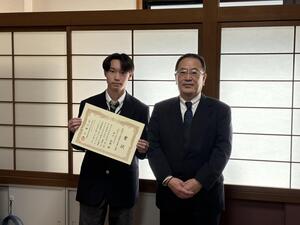 1年の中川くんが書いた「物価高と消費税の意義と役割」という作品が、税に関する高校生の作文で優秀と認められ、表彰していただきました。おめでとうございます!