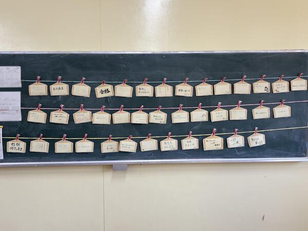 3年生の教室に絵馬が飾られていました。それぞれの思いが記入されていました。明日から共通テストも始まります。体調管理をしっかりしてベストを尽くしてほしいです。これまでの努力が形になりますように!