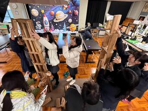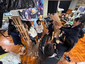 最後は風倒木積み上げ選手権を実施しました。緊張感の中、協力して作業をして一体感が生まれました。康橋国際学校の生徒が前向きに取り組んでくれて、非常に楽しい時間となりました。ありがとうございました。