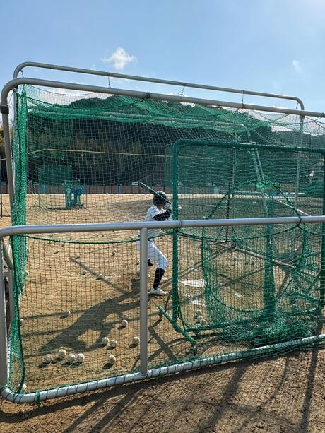 23日の午後のグラウンドでは野球部がバッティング練習をしていました。ボールがよく遠くまで飛んでいました。意識するポイントを選手間で共有しながら、練習をしていました。