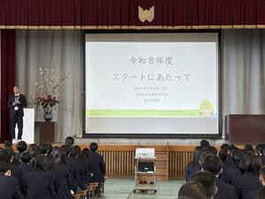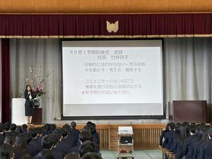 4月8日にHRと始業式を実施しました。友達との久しぶりの再会を喜ぶ生徒が多かったです。始業式では校長から学ぶ姿勢とコミュニケーションについての話、生徒支援部長からは新年度スタートにあたっての心構えの話がありました。最後に生徒会から顕著な活動の報告とSTEP(生徒の力で学習環境を整える取組)についての報告がありました。