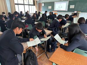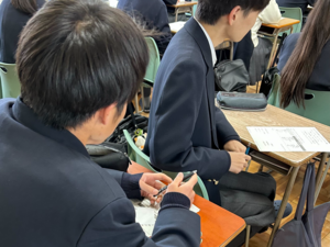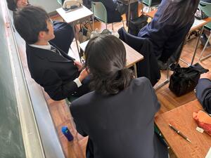 情報の活用の仕方とリスクを考えました。身近なSNSが他者にどのような影響を与えるかを考え、正しく活用するにはどうしたら良いかを話し合いました。