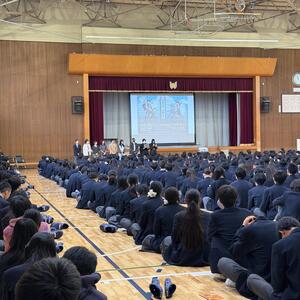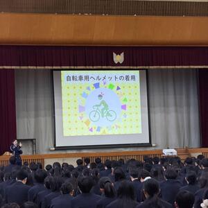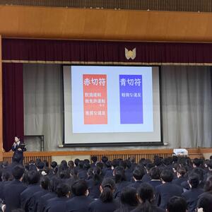 全学年対象に交通安全教室を行いました。4月1日から自転車の違反に交通反則通告制度(青切符)が導入されたことから、左京警察署の方に、改めて交通ルールとマナーについての説明をしてもらいました。全員が、交通ルールをしっかり守り安全に登下校できるように心がけましょう!