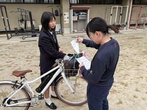 4月9日の放課後に自転車登録を行いました。1学年と生徒支援部の教員で1年生の自転車の点検をしました。交通ルールをしっかりと守って、安全に利用してください。