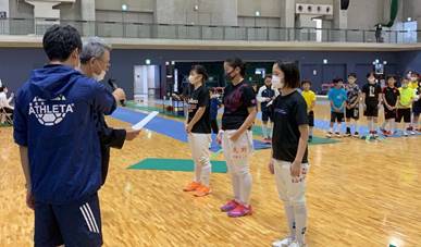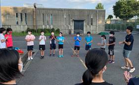 久々に集合したきっずは距離をとりながら挨拶をかわし、アップから元気いっぱいに取組みました。9期生は初めて先輩たちと顔を合わし、きちんと自己紹介ができました。初めての練習は戸惑いながらも7・8期生に教えてもらいながら楽しく練習していました。