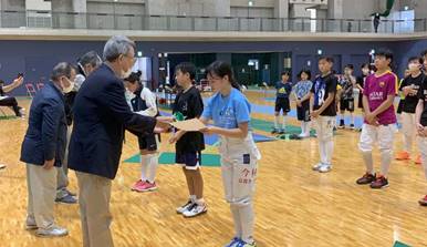 第43回京都府民総合体育大会が10月11日に大山崎町体育館で開催され、小・中学生きっずが出場しました。全員が今年度初めての大会となりました。また9期生にとっては記念すべきデビュー戦でした。今年度はコロナウイルスの影響で今まで全ての大会が中止となっており、コロナ禍の中に大会を開催してくださった関係者の皆様に感謝の気持ちを持って、大会に臨みました。