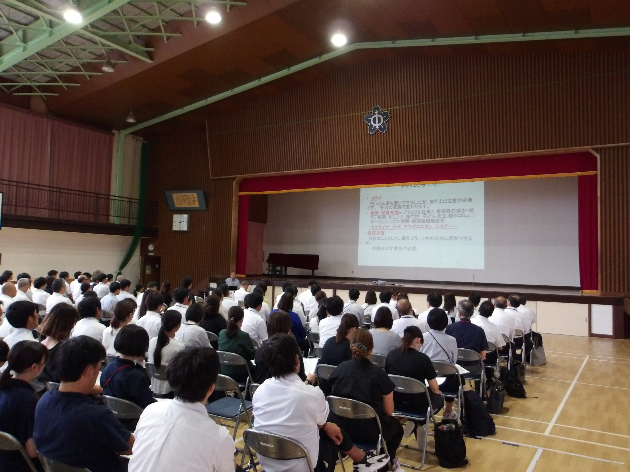 綾部支部10月8日(水)綾部市学校教育研究会秋季研究会を開催しました。全体会では、関西国際大学の中尾繁樹先生にお越しいただき、「みんなの特別支援教育~子どもの見方・指導の仕方~」と題して講演をしていただきました。後半は、各教科部会をもち、授業研究会に向けての事前研究を行ったり、学年グループに分かれて、教材研究を行ったりしました。講演で学んだこと、教科部会で協議したことを、2学期・3学期の教育活動に活かしていきたいと思います。