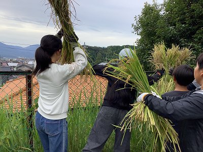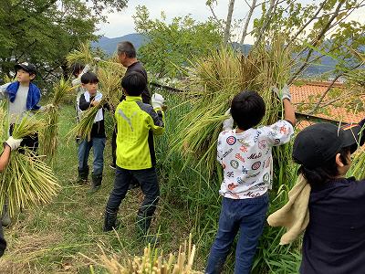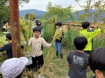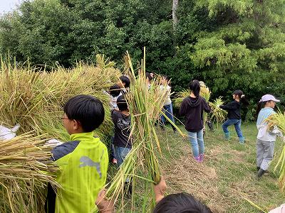 ◆ 5年生稲刈り いちばっ子の一日 2025.11.06 10月3日 5年生稲刈り 岩屋地域の方にお世話になり、コメ作りを行ってきました。稲穂も実り、この日は稲刈りとなりました。カマを使い手作業で刈り、刈り取った小学校のグラウンドのフェンスに丁寧にかけていきました。おいしいお米がいただけるのが楽しみです。お世話になった地域の方には感謝いたします。 Post Views: 50