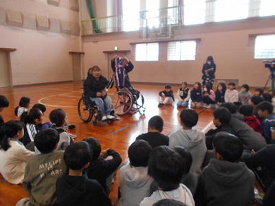 ◆ 理解教育 いちばっ子の一日 2025.11.26 11月25日 阪根さんのお話を聞く会 アテネパラリンピック車いすバスケットボール代表選手の阪根泰子様にご来校いただき、お話を聞きました。「それぞれ大変なことはある。助け合って過ごしていくことが大事」「苦手なこともやってみることで楽しくなることもある。チャレンジをしてほしい。」等、ご自身の経験を通したお話は児童の心に響きました。競技用車いす体験やバスケットボールの経験もさせていただきました。貴重な経験となりました。 Post Views: 57