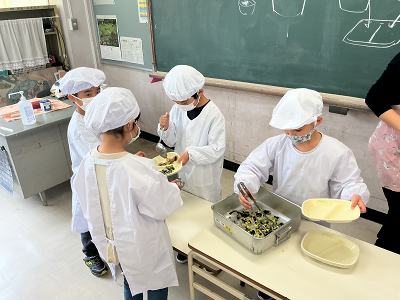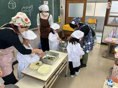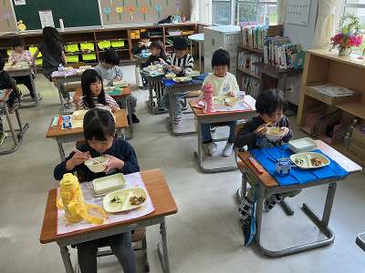 ◆ 1年生初給食 いちばっ子の一日 2026.04.16 4月13日 1年生の給食が始まりました。栄養教諭や担任の先生に教えてもらいながら、子どもたちは自分たちで配膳に挑戦しました。お祝いメニューのクレープやからあげに、笑顔が広がるひとときとなりました。 Post Views: 92