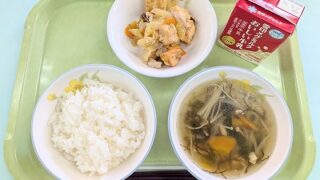 今日の給食は ごはん・厚揚げのチャンプルー・もずくスープでした。