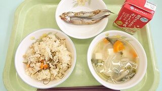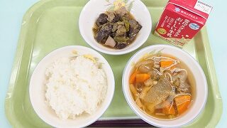 今日の給食は ごはん・秋なすと鶏肉のみそ炒め・冬瓜汁でした。