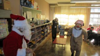 本日はクリスマス給食ということで、サンタさんとトナカイさんがカップケーキを各教室に届けてくれました!子どもたちはサンタさんとトナカイさんの登場に喜んでくれてました。サンタさん、トナカイさんありがとうございました。2学期の最後、みんなで最高...