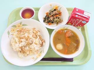 今日10月6日は十五夜です。古くから十五夜のころは、空気が乾燥していて月がきれいに見え、夜も寒くないため、お月見にはよい時期とされてきました。お月見の夜はすすきをかざり、月見団子やさといもなどをおそなえするため、十五夜は『いも名月』ともよばれています。それにちなみ、今日の月見汁には白玉団子とさといもを入れました。