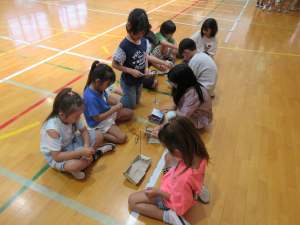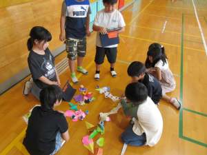 令和7年度2年生の生活科の授業で、牛乳パックなどの廃材を利用して1からおもちゃを作りました。今日は1年生を招いて、作ったおもちゃで遊んでもらう「おもちゃランド」を開催しました。2年生の子たちが一生懸命に作ったおもちゃを1年生が楽しそうに遊んでいました!