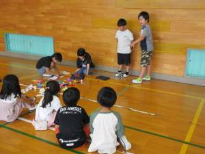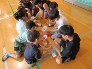 2年生の生活科の授業で、牛乳パックなどの廃材を利用して1からおもちゃを作りました。今日は1年生を招いて、作ったおもちゃで遊んでもらう「おもちゃランド」を開催しました。2年生の子たちが一生懸命に作ったおもちゃを1年生が楽しそうに遊んでいました!