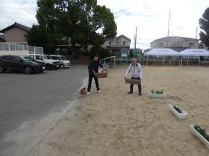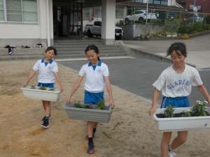 運動会前日となりました。午前中は各学年最後の運動会練習を一生懸命に行っていました。その後、会場準備で花いっぱいのプランターを準備し、運んでくれています。天候がどうなるか?わかりませんが何とか雨が降らないでほしいと願いながら会場準備をしてくれました!