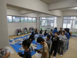 令和7年度10月31日(金)のカレー作りを実施した後、午後からは焼き板づくりを行いました。横田さんの製材所でカットした板をバーナーで焼き、その板を磨いてペイントする作業となります。子どもたちは黙々と板を磨いています。すてきな作品はできたかな。林間学習の内容を変更して今回は校内でカレーづくりと焼き板づくりを実施しました。今後は森林インストラクターの小川さんに井手町と玉川付近の自然についてレクチャーしていただきながら散策をする予定です。