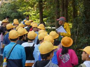 今日は大正池グリーンパークで実施予定だった林間学習を変更して、玉川付近の自然散策を実施しました。森林インストラクターの小川さんから玉川の樹木や花について散策しながら丁寧に教えていただき、われらのふるさと井手町が誇る「玉川」について多くの学びを得ることができました!