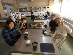 令和7年度本日の3,4校時に5年い組で調理実習を行いました。田植え体験、稲刈り体験でお世話になった中坊さんのお米と出汁から作ったお味噌汁をセットにして調理しました。美味しいご飯を炊くためには、水加減、火加減が大切ですね。自分たちで育てたお米を和食の基本である「あったかいごはん」と「味噌汁」でいただけることに感謝ですね。明日は5年ろ組が調理実習です。