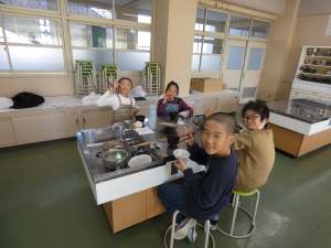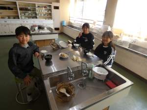 本日の3,4校時に5年い組で調理実習を行いました。田植え体験、稲刈り体験でお世話になった中坊さんのお米と出汁から作ったお味噌汁をセットにして調理しました。美味しいご飯を炊くためには、水加減、火加減が大切ですね。自分たちで育てたお米を和食の基本である「あったかいごはん」と「味噌汁」でいただけることに感謝ですね。明日は5年ろ組が調理実習です。