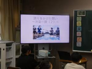 今日は6年生で「渋染一揆」の題材で学習しました。「人間としての誇り」をかけ、「人間らしく生きること」を求め続けた姿から、自分の生き方を見つめる学びができました。