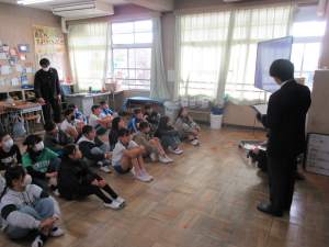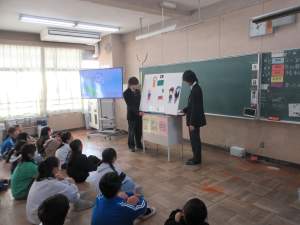 本日の5校時に京都府立木津高等学校情報企画科の2年生の生徒さんが本校の5年生対象に食品ロスについてのパネルシアターを実施してくれました。