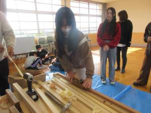 本日、かわな工業の皆様にお世話になり、胸花づくりの事前学習を実施しました。事前学習では、かんな体験をさせていただいただけではなく、環境を守るために生産者、消費者としてどうすればいいのか、「いらないから捨てるではなく どうすれば使えるかを考える」ことの大切さについて学びました。また、使い方と工夫でできることがたくさんあることを学びました。