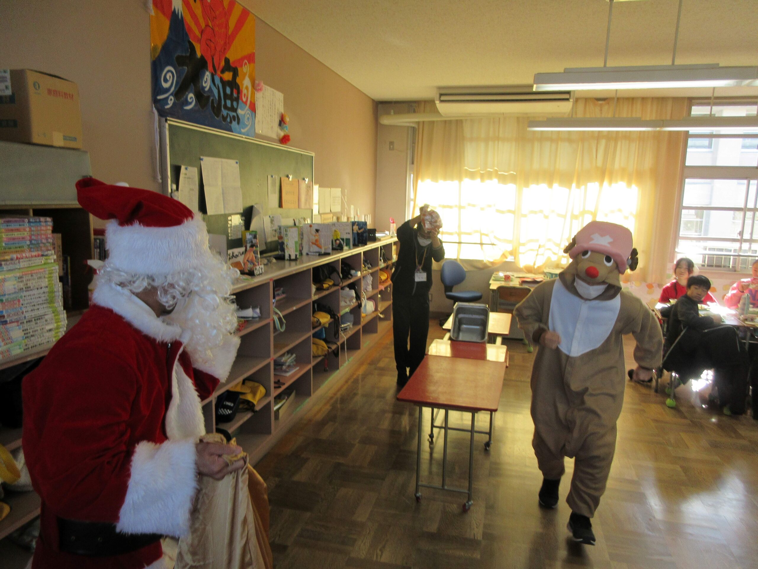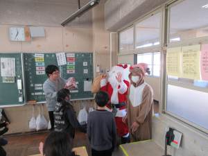 令和7年度本日はクリスマス給食ということで、サンタさんとトナカイさんがカップケーキを各教室に届けてくれました!子どもたちはサンタさんとトナカイさんの登場に喜んでくれてました。サンタさん、トナカイさんありがとうございました。2学期の最後、みんなで最高の締めくくりができるようがんばりましょう!メリークリスマス!