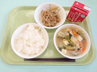 今日の給食は ごはん・みぞれ鍋・ごぼうのみそ炒めでした。
