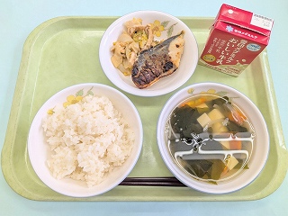 今日の給食は 茶の香ごはん・サワラの西京焼き・白菜とお揚げの和えもん・すまし汁でした。