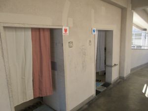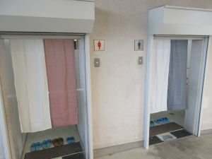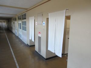 本校では、児童が安心してトイレを利用できるよう、男女トイレ入口にのれんを設置しました。