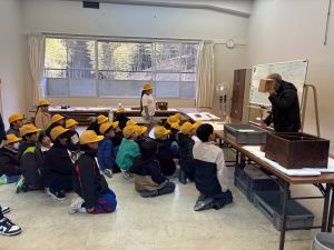 子どもたちは、昔の電話や洗濯板、かまど、テレビなどを実際に見て、「今と全然ちがう」「昔の人は大変だったんだね」と驚いた様子でした。また、説明を聞きながら、「どうしてこの道具が必要だったのか」「今の道具と何がちがうのか」を考えました。