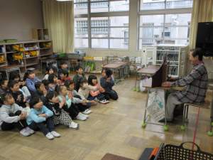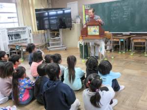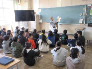 「おはなし畑(絵本の読み聞かせ)」を実施しました。地域のボランティアの皆様に来ていただき、子どもたちは目を輝かせながらお話の世界に引き込まれていました。ページをめくるたびに笑顔や驚きの表情が広がり、教室は温かな時間に包まれました。地域の皆様に支えられ、子どもたちの豊かな心が育まれていることを感じるひとときとなりました。