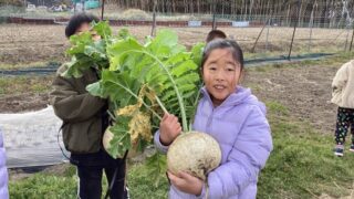 今回の「おはなし給食」では、物語『大きなかぶ』が採用されました。この取組に合わせて、中学年の子どもたちが育ててきた京都の伝統野菜「聖護院かぶ」が、実際の給食の食材として使われました。先日収穫した聖護院かぶを昨日調理室にとどけ、今日の給食...