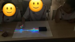 中学部の様子 中学部 生活単元学習 1年生 「光と音の不思議 ~IDEラボ~」で光について勉強しています。以前作ったステンドグラスに光を当て壁に映ったものを見ました。謎の博士が登場して、「光は曲がるのか」という問題を出されました。まず自分で考え、その後みんなと意見交流をした後実験... 2025.09.05 中学部の様子