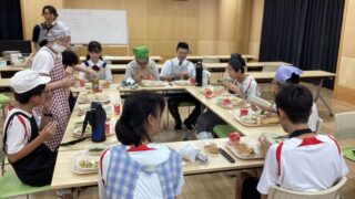 中学部の様子 中学部 交流給食 3年生が高等部生徒と交流給食を始めました。グループに分かれて楽しくお話ししながら食べていました。交流を深め仲良くなり、高等部と「学部混合むすびスタディ」の取組みを進めていきます。 2025.09.17 中学部の様子