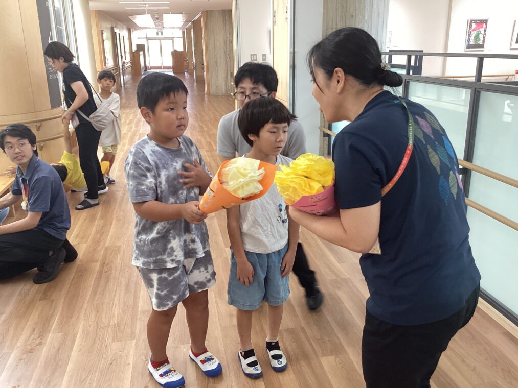 小学部低学年5、6組みの児童が、日頃お世話になっている先生に、お礼の花束を作って渡しにいきました。渡す時には、「いつもありがとうございます。」という言葉も言いながら、手渡すことができました。誇らしげな様子やや恥ずかしそうな様子が見られました。子どもたちからの心にこもったプレゼント、とても嬉しいです。