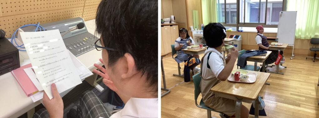 このスローガンは、実行委員会のメンバー全員で話し合いを重ね、知恵を出し合って作り上げたものです。放送では、スローガンに込めた思いを説明し、聞いている人たちを楽しませるアドリブを入れながら、全校児童生徒に向けて力強く呼びかけました。