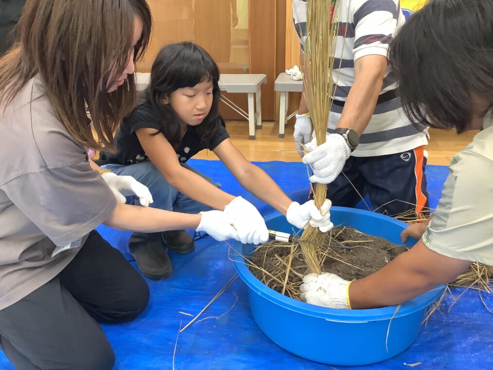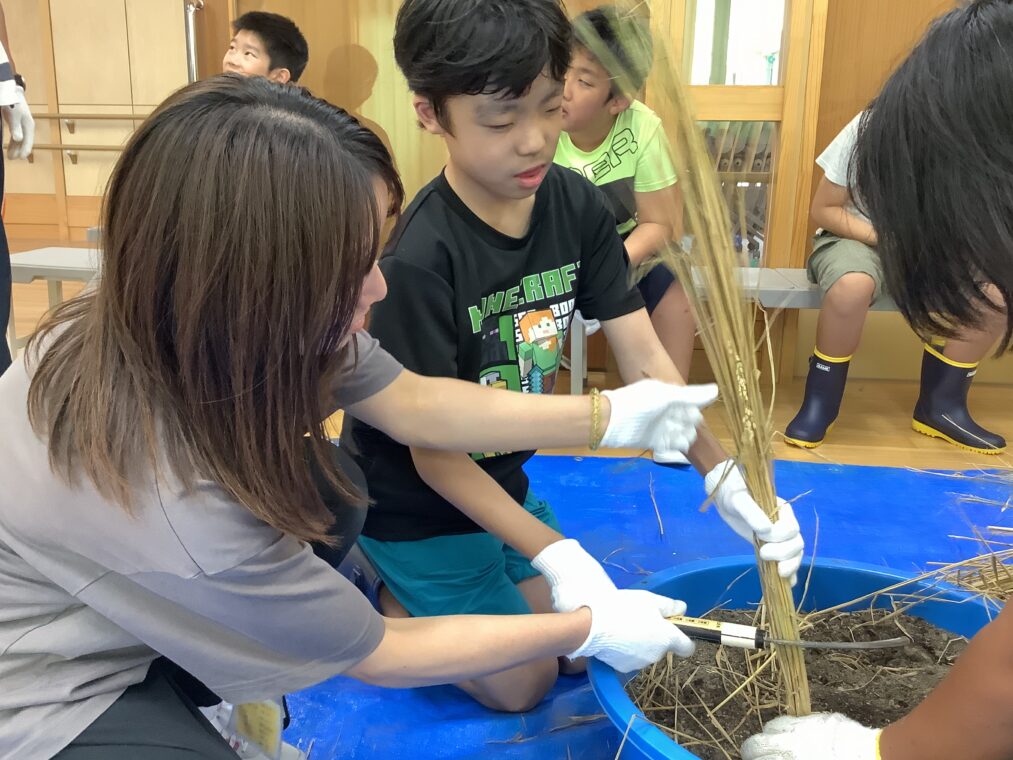 明日10日に、井手小学校との学校間交流で、5・6年生は稲刈りに行きます。春に田植えをした苗がどれくらい成長しているか楽しみですね。稲刈りでは、カマを使って稲を刈り取ります。カマを安全に正しく使えるように、事前に学校で学習をしました。穂の持ち方やカマの持ち方、カマの動かし方などを知り、一人一人練習をしました。