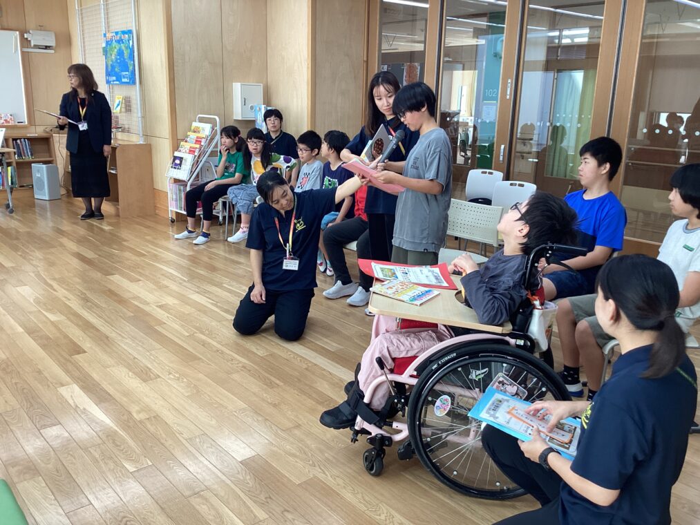 国際ソロプチミスト南京都様より、50冊程度の本の寄贈をしていただきました。その贈呈式を図書ラウンジで行い、高学年児童が参加しました。児童代表挨拶をした後、3名の児童が好きな本の紹介をしました。最後に感謝の歌として、「小学部ダンス」を見ていただきました。9月に月刊貸出冊数を更新するほど、図書室を活用している児童たち。寄贈していただいた本を読むのが楽しみですね。ありがとうございました。
