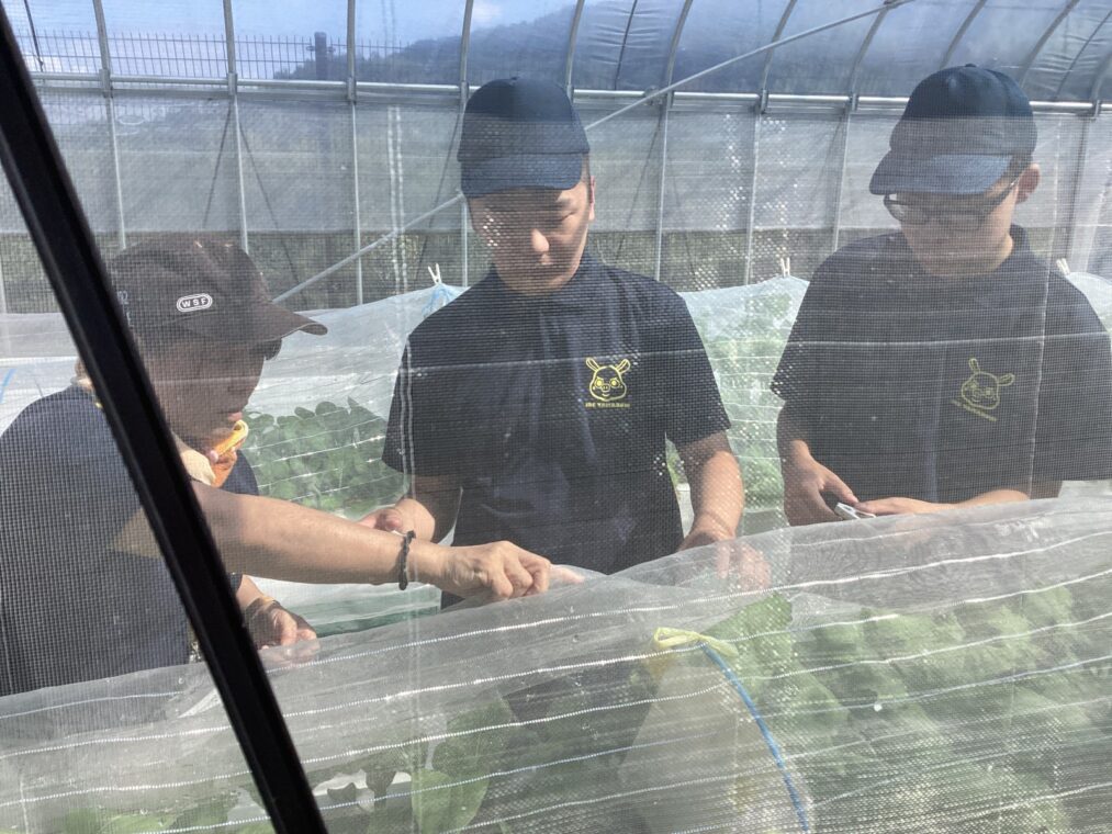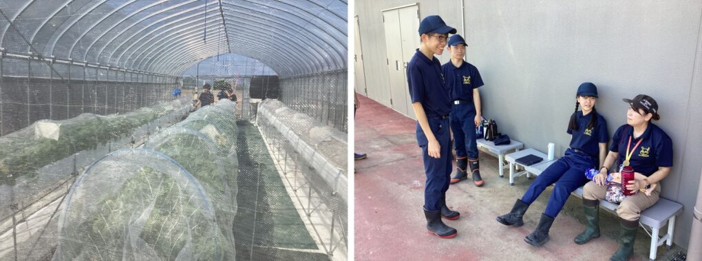 厳しい夏の暑さも和らぎ、屋外やハウス内での作業がしやすい気候になってきました。今月には、初となる木津川市役所での販売会、そして やまぶき祭(学校祭)での販売と、大きなイベントが控えています。生徒たちは、お客様に喜んでいただける野菜を届けようと、日々の栽培管理を行っています。この日は、2学期からの新商品となる小かぶ、1学期から続けて栽培している小松菜と水菜の生育状況をチェックしました。涼しくなって作業しやすくなった一方で、葉を食べる虫がつくように…。生徒たちは一枚一枚の葉を丁寧に点検し、根気強く害虫を取り除いていきました。天候や気温の変化により、栽培環境は日々変わります。その変化に応じて、観察し、考え、手を動かす。思い通りにいかないことの連続である農作業を通して、生徒たちは自然と向き合いながら働くことの難しさと奥深さを、まさに体験の中で学んでいます。