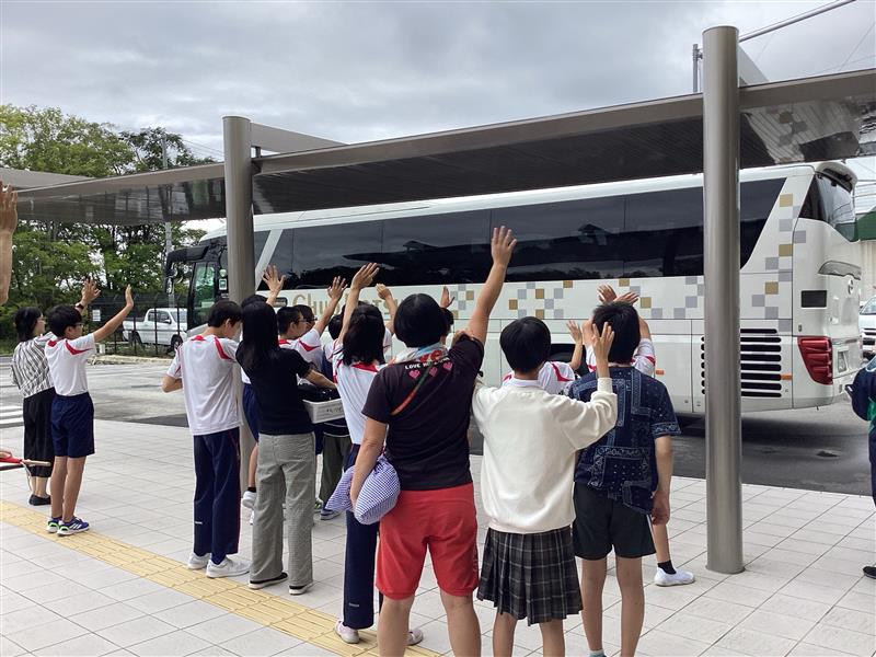 本日は、高等部の生徒が修学旅行へ出発する日でした。3年生の生徒たちは、日頃「むすび交流」で一緒に学んでいる先輩の旅立ちを温かく見送りました。玄関前では、手を振る姿が見られ、先輩とのつながりを感じるひとときとなりました。見送られる高等部生も、笑顔で応えながら、出発していきました。交流を通して育まれた関係が、こうした場面でも生徒の心を豊かにしていることを感じました