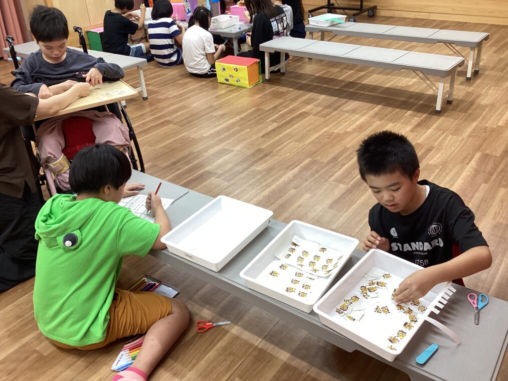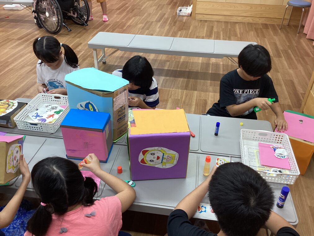 高学年は、やまぶき祭に向けてワークショップで使う道具作りを進めています。この日は、6年生と5年生で役割を分担して作業に取り組みました。6年生は、箱に画用紙やいろいろな絵を貼り付け、5年生はチケットに使う絵を切ったり色を塗ったりしました。いよいよ2週間後にやまぶき祭が迫ってきました。どの学年も準備や練習に取り組んでいます。どんな発表になるのか楽しみですね。