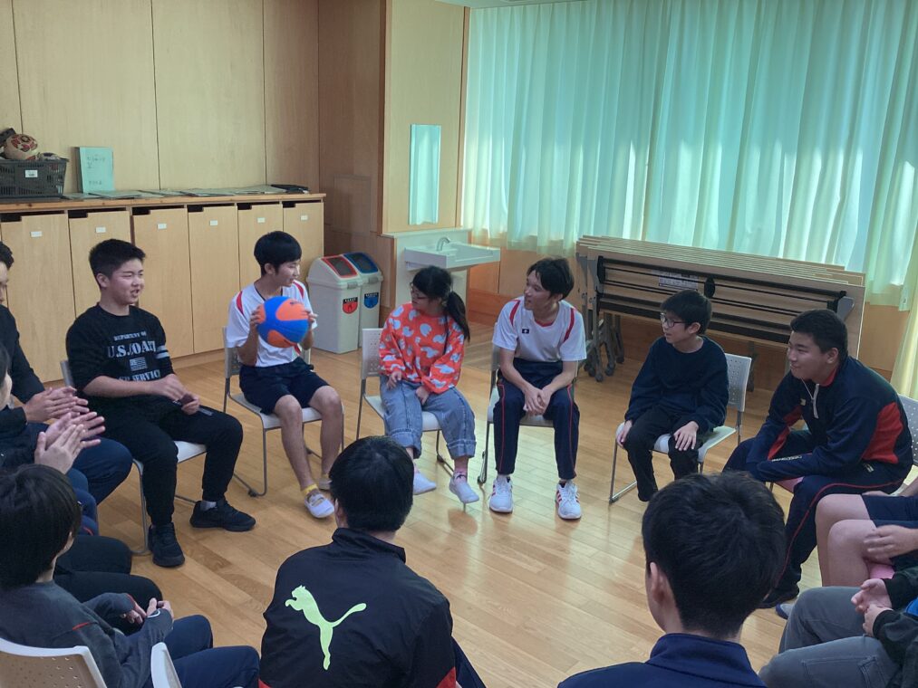 小学部の様子小学部6年生と中学部2年生が合同で授業をするむすびスタディがスタートしました。授業の目標は「おむすびカフェを開こう」です。今日は、授業の目標や日程の確認をしたあと、中学部が自己紹介をしてから小学部が自己紹介をしました。名前と好きな食べ物や好きな色などを発表すると、温かい拍手をしあう姿にほっこりしました。最後は、ボール回しゲームをして楽しみました。中学部の先輩の姿からいろいろなことを学んで欲しいと思います。