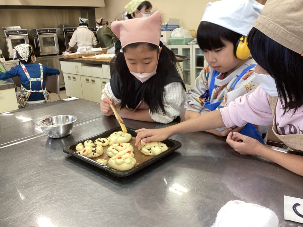 中学年は、先週の金曜日に校外学習に行ってきました。今年度の行き先は、「やわた流れ橋交流プラザ四季彩館」です。四季彩館では、ウインナーパン、バターシュガーパン、あんパンの3種類のパン作りを体験させてもらいました。一つずつ作り方を説明してもらい、話をよく聞いて自分たちでも挑戦していきました。細長く生地を伸ばしたり、好きな形に工夫して作ったり、仕上げのケチャップを塗ったり、いろいろな工程がありましたが、一生懸命取り組んでいました。